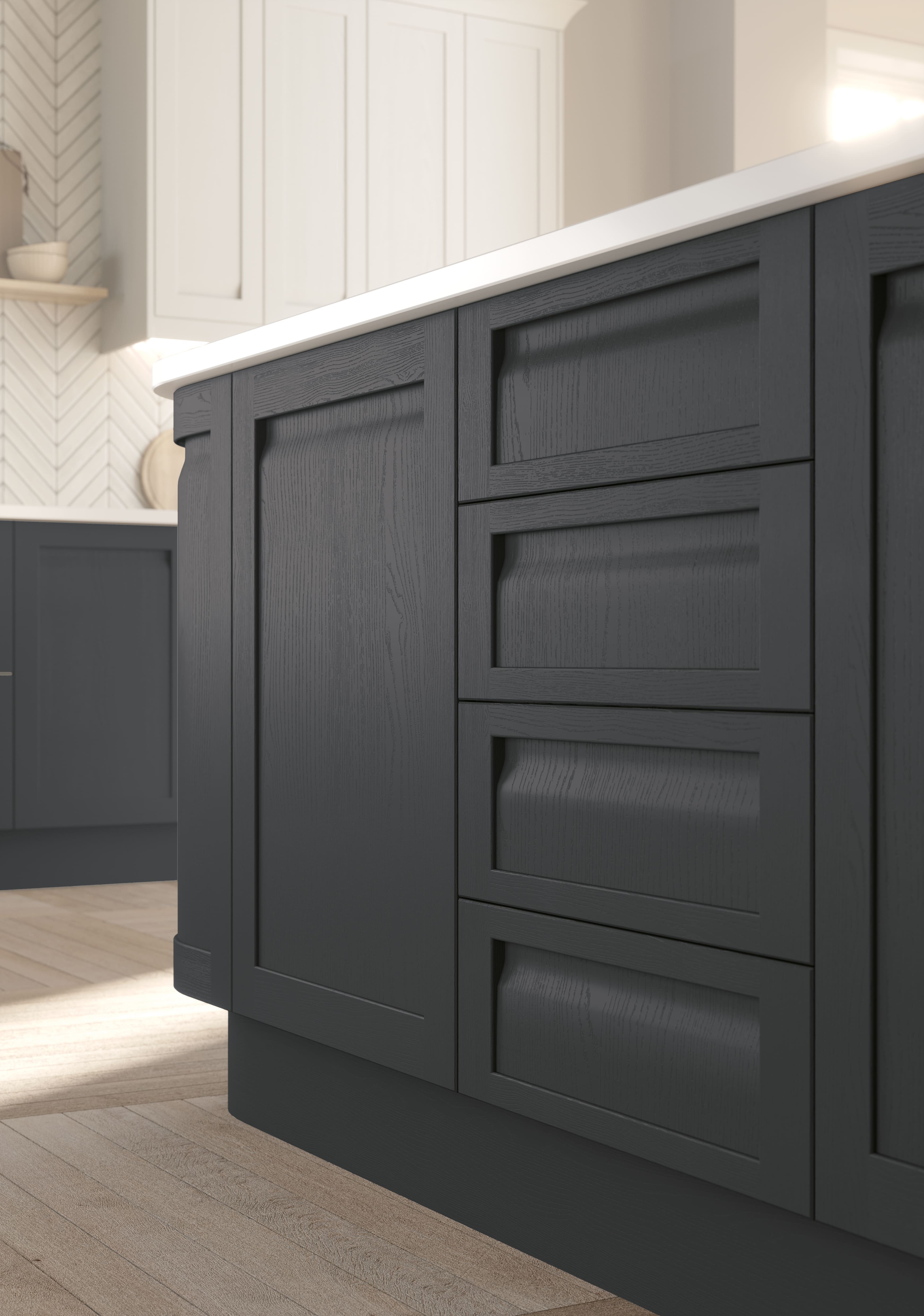 This slim frame timber shaker door with integrated handle is available in a number of stock colours as well as 'paint to order'.